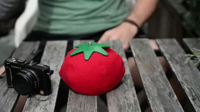 The Heirloom is a versatile alternative to the tripod in the shape of a tomato made from a single piece of red Cordura, camera mount in the green stem and filled with beans. I launched it on Kickstarter in the summer of 2014. You know, tomato season.